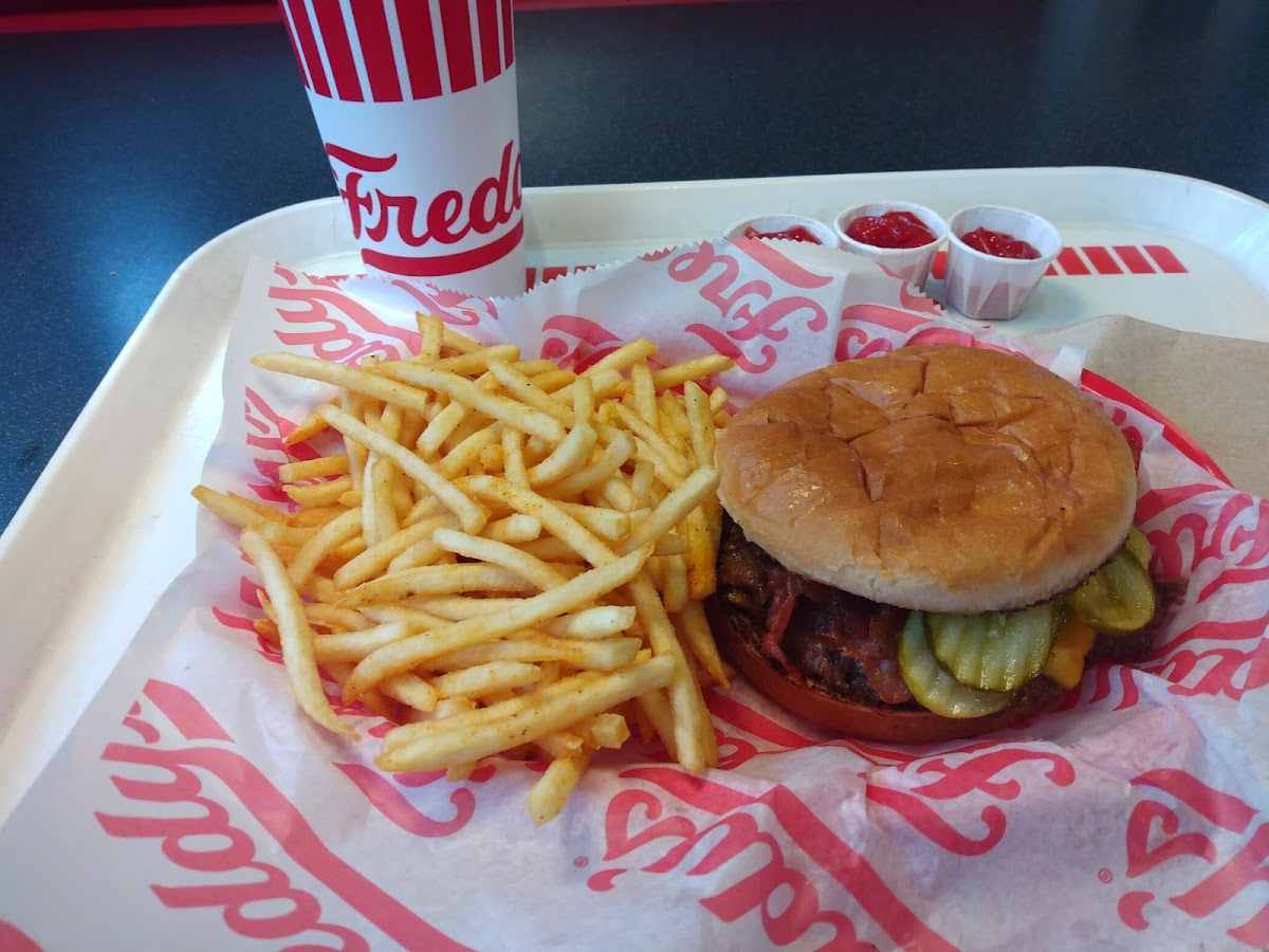 I had to go to Sam’s Club and I noticed that there was a Freddys in the same area so I stopped and got me something to eat. They had just open so I had fresh fries and a burger was amazing. I got a number three California style and it was good to me, along with that Freddys spicy sauce it was exactly what I needed